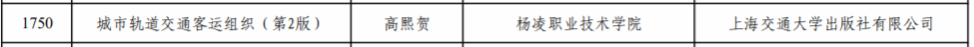 近日,教育部公示了拟入选第二批"十四五"职业教育国家级规划教材名单。学院高熙贺副教授主编的《城市轨道交通客运组织(第二版)》(上海交通大学出版社有限公司)教材入选。