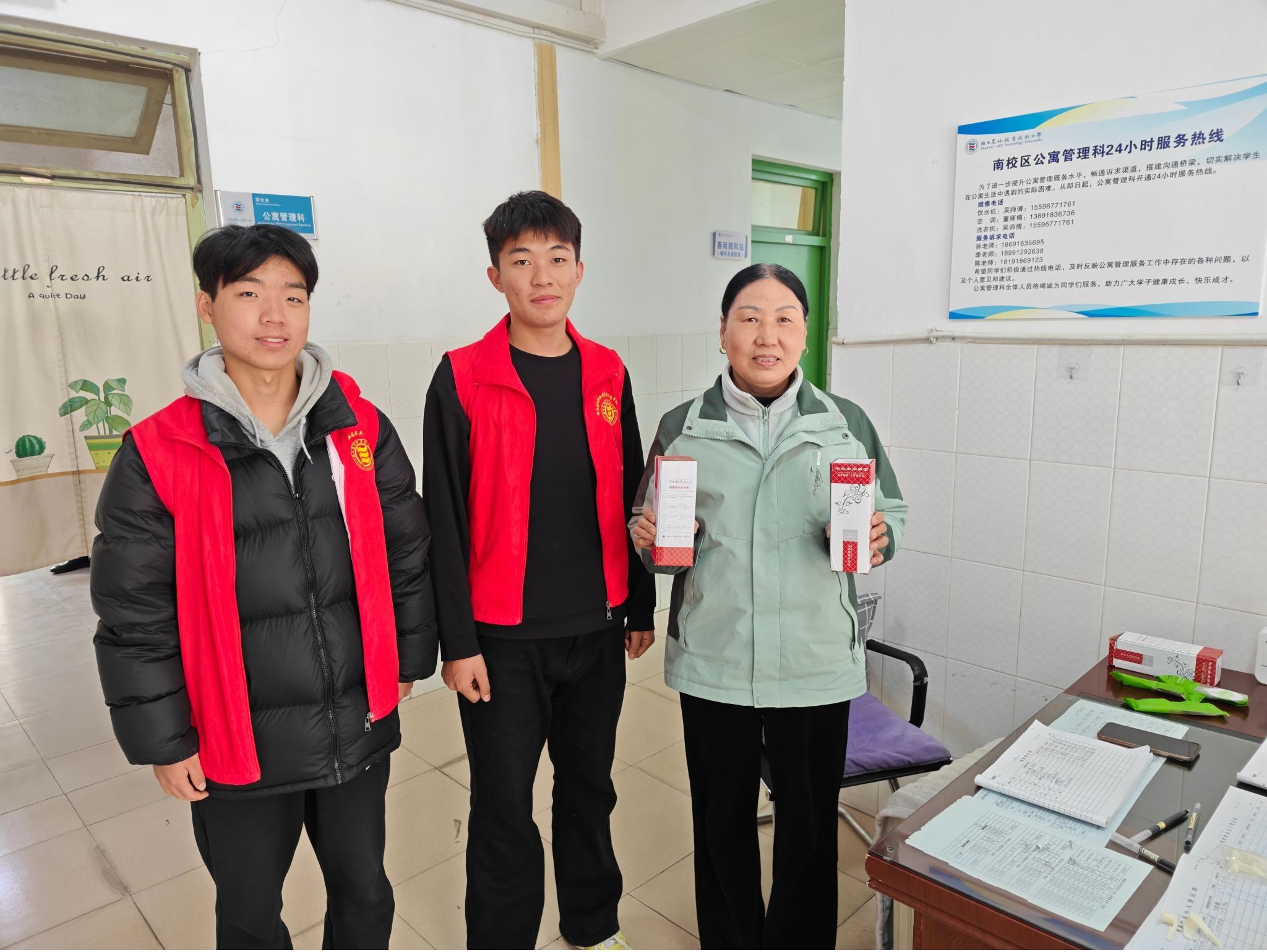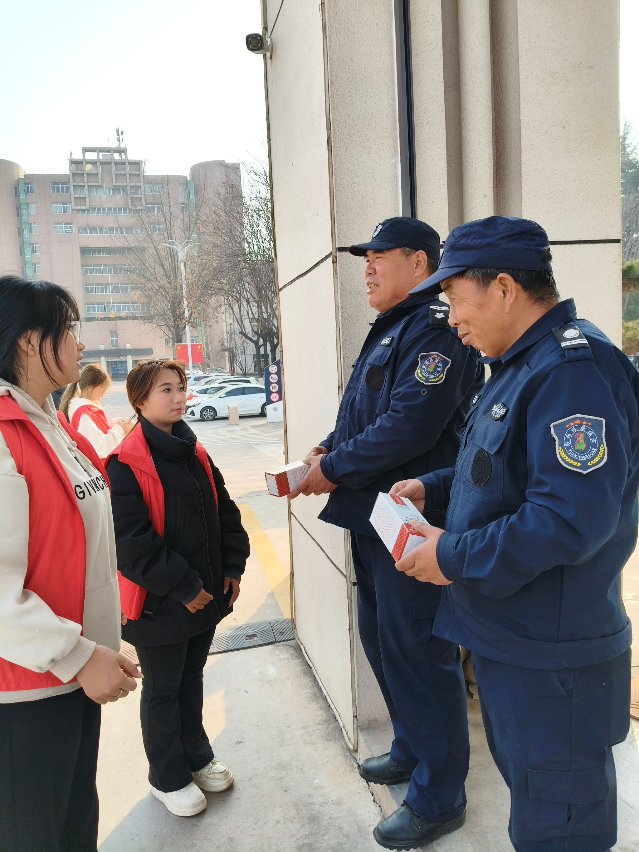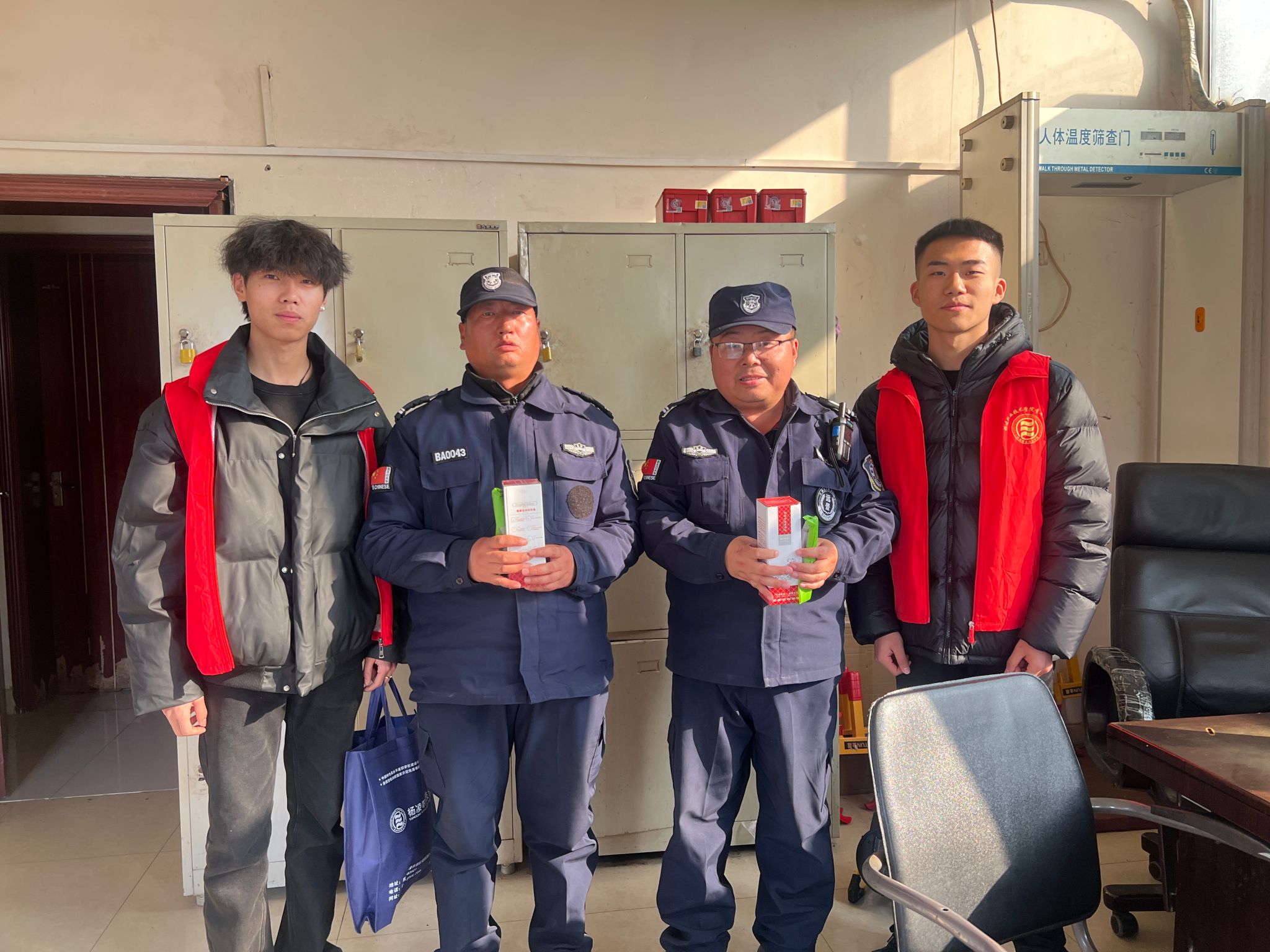 本次活动通过物资慰问与情感交流相结合的方式,向日常保障学生安全、维护校园秩序的宿管阿姨和保安师傅表达感谢。同学们准备了水杯、茶叶、秋梨膏等,每一份礼物都承载着对校园守护者的敬意。活动不仅为寒冬中坚守岗位的宿管阿姨和保安师傅送去物质温暖,更致力于唤起全校同学对他人的尊重与感恩之情,助力营造互敬互爱、和谐融洽的校园文化氛围。