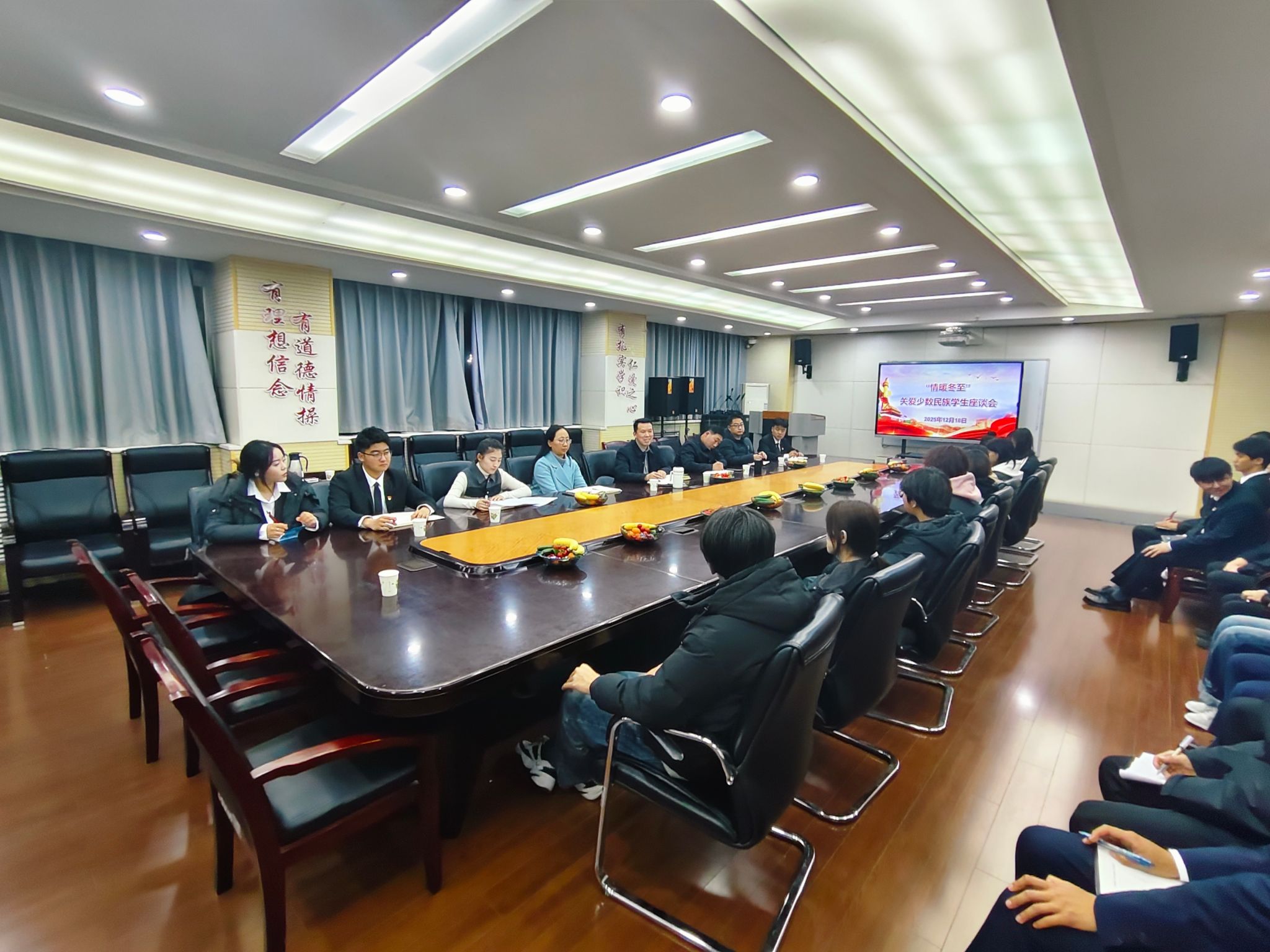 随后,与会老师为少数民族学生发放了节日纪念品并合影留念。韩磊进一步就学业、生活及个人发展等方面对学生提出了期望。座谈会上,师生之间开展了亲切交流。