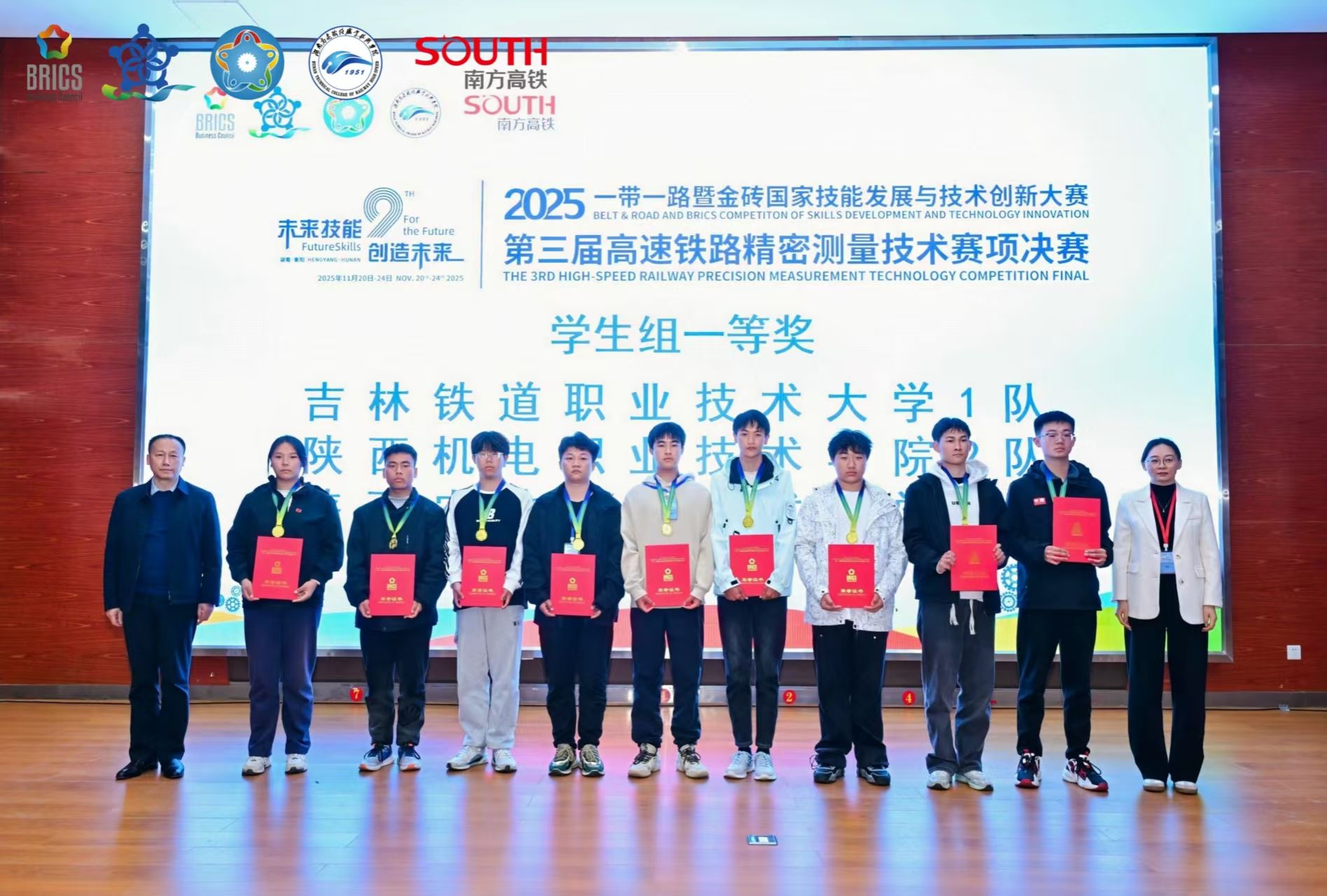 近日,2025“一带一路”暨金砖国家技能发展与技术创新大赛之第三届高速铁路精密测量技术赛项全国总决赛在湖南高速铁路职业技术学院落幕。经过激烈角逐,由我院交通与测绘工程学院白广明、房海勃老师指导的两支参赛队伍发挥出色,分获大赛一等奖和二等奖,彰显了我院轨道工程类专业人才培养的扎实功底。
