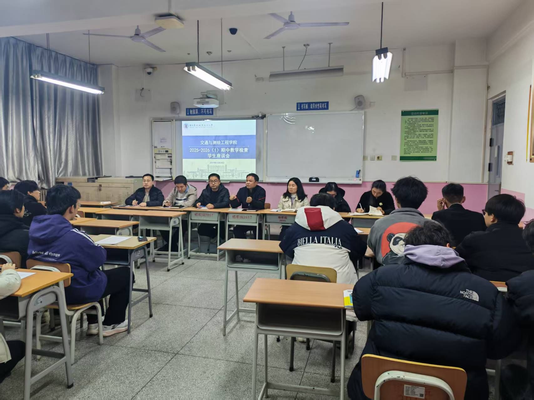 为深入贯彻落实学校教学管理工作要求,全面掌握本学期教学运行状况,推动教学质量持续提升,交通与测绘工程学院于11月17日至11月28日组织开展为期两周的期中教学检查工作。本次检查围绕教学基础环节、“三教”改革、实验实训等多个方面,系统推进自查、检查、总结整改各阶段任务,确保教学工作有序、高效运行。