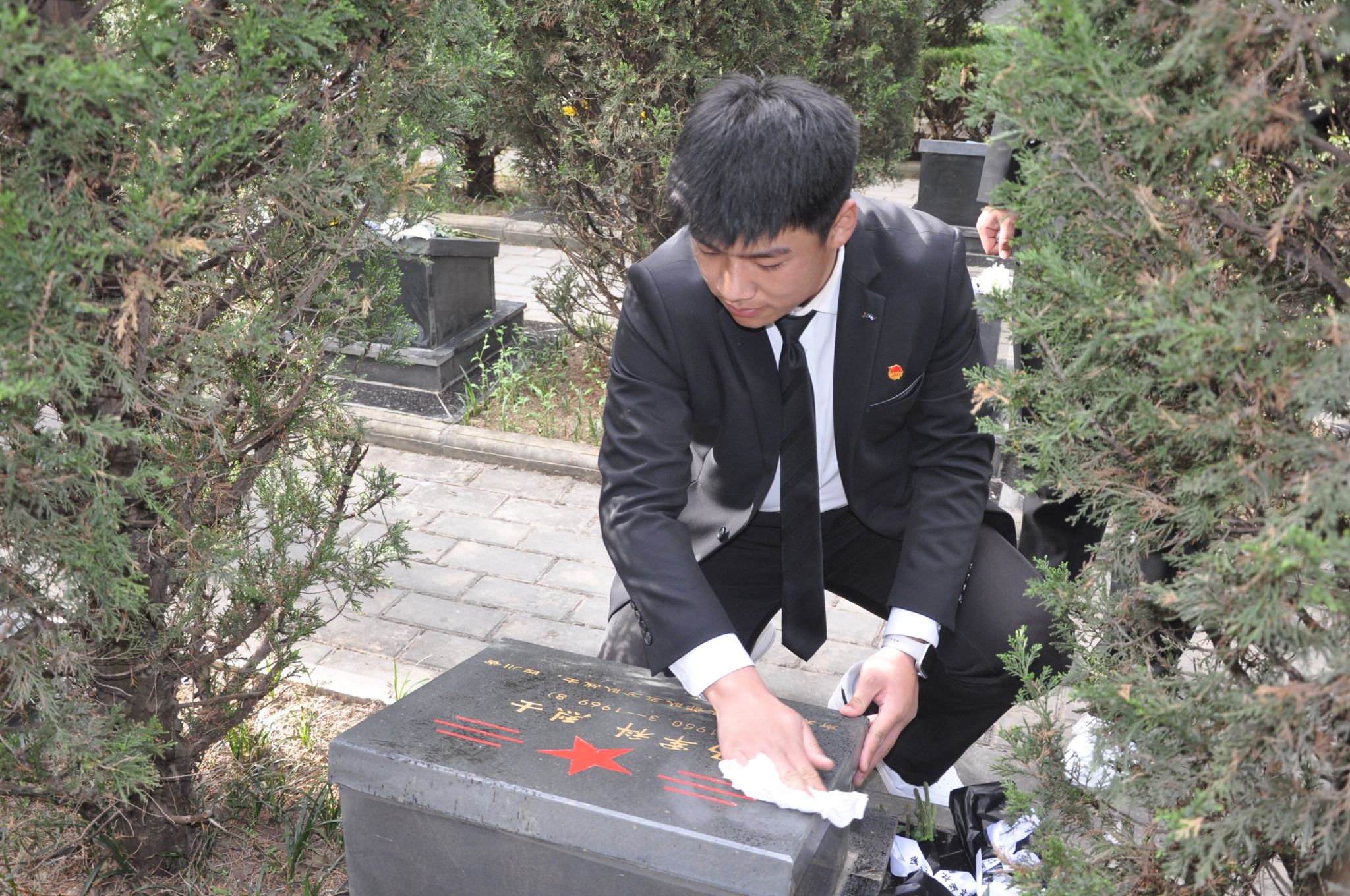 自由瞻仰环节,全体人员有序绕行纪念碑,在墓碑前驻足,瞻仰烈士墓碑,追忆先烈们的英雄壮举,感悟革命先辈的爱国情怀。