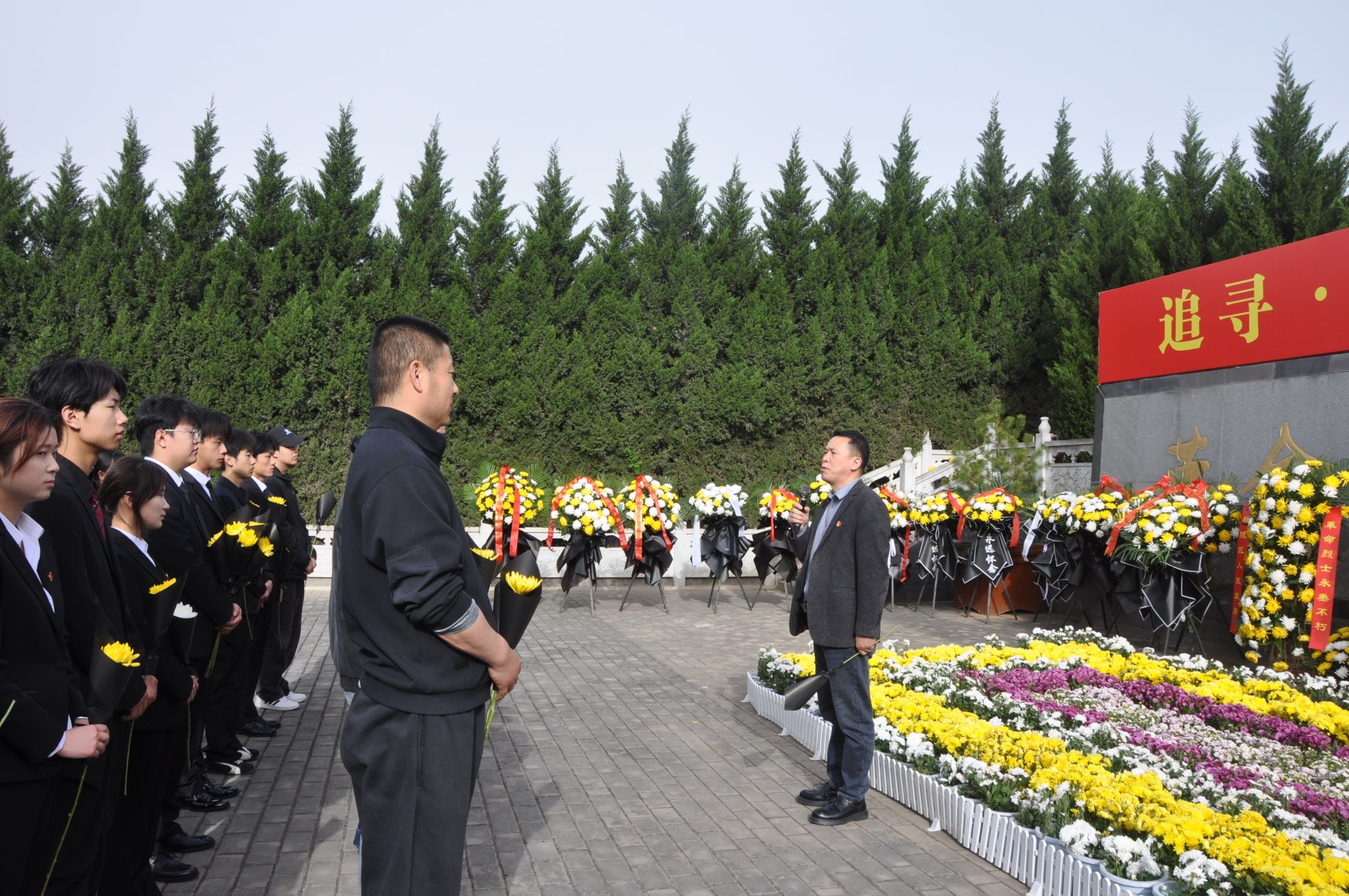 先烈精神永不忘,青春誓言记心间。随后,学生干部代表郭俊涛带领全体同学重温入团誓词,铿锵有力的誓词回荡在陵园上空,彰显着新时代青年坚定的理想信念与责任担当。一句誓言,一份责任,同学们以青春之名立誓,承诺将以先烈为榜样,不忘初心,砥砺前行。